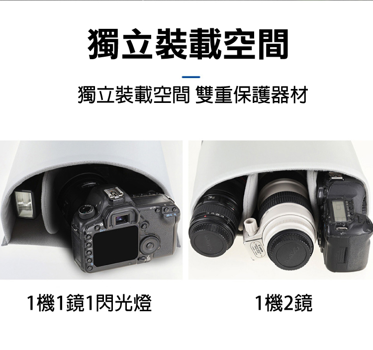 ■裝載:1機1鏡1閃光燈;或1機2鏡