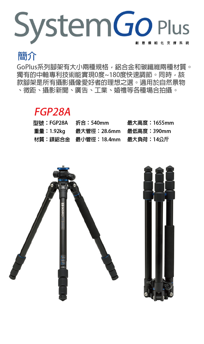 【BENRO百諾】FGP28A SystemGo Plus系列反折鎂鋁合金三腳架套組