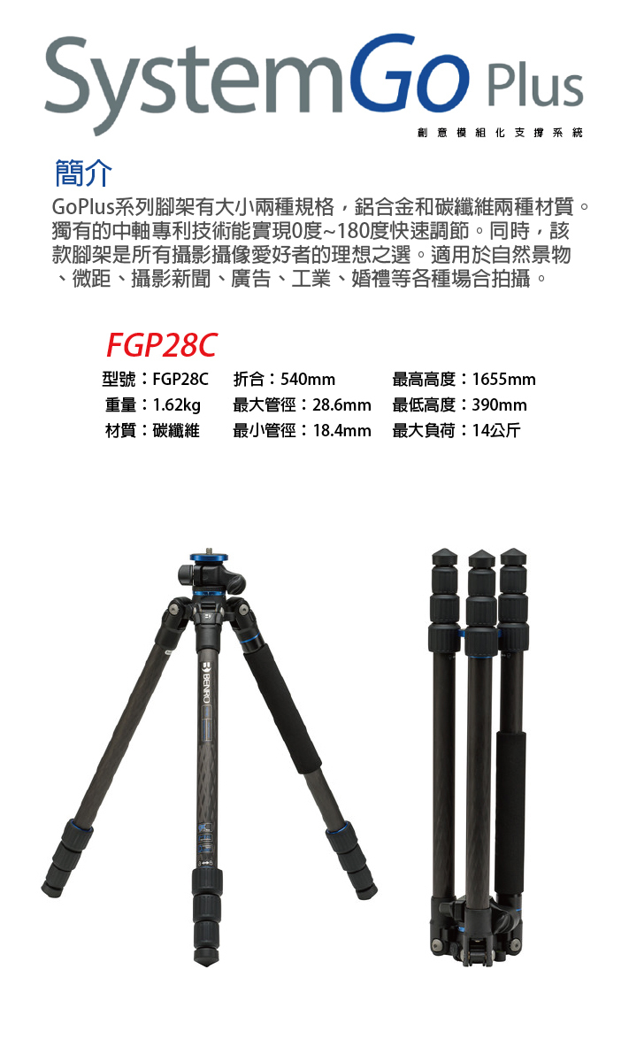 【BENRO百諾】FGP28C SystemGo Plus系列反折碳纖維三腳架套組