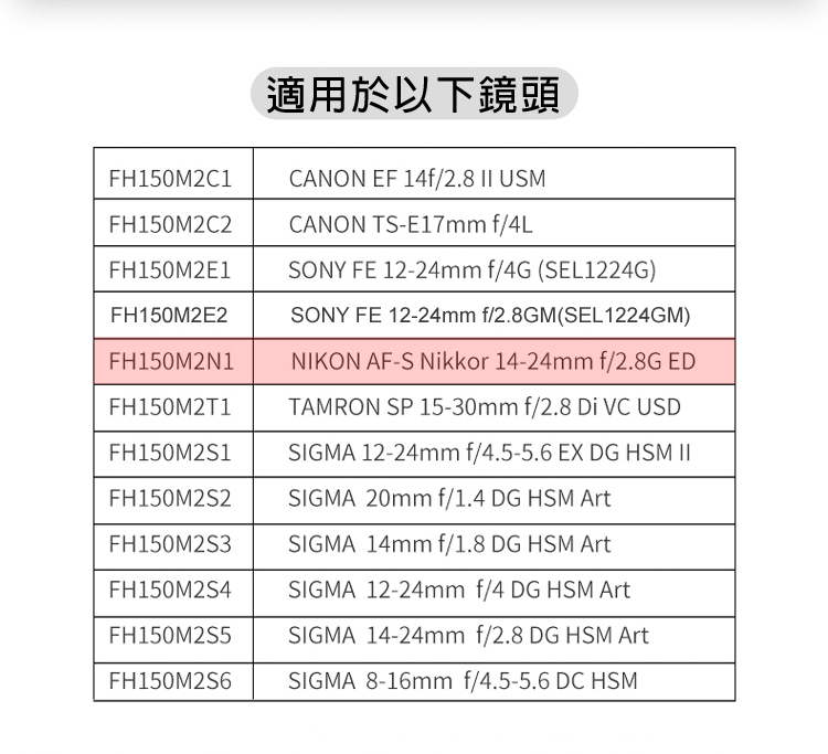 ■ 適用鏡頭 NIKON AF-S Nikkor 14-24mm f/2.8G ED