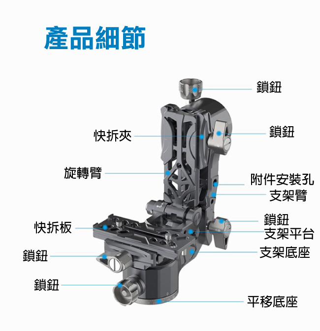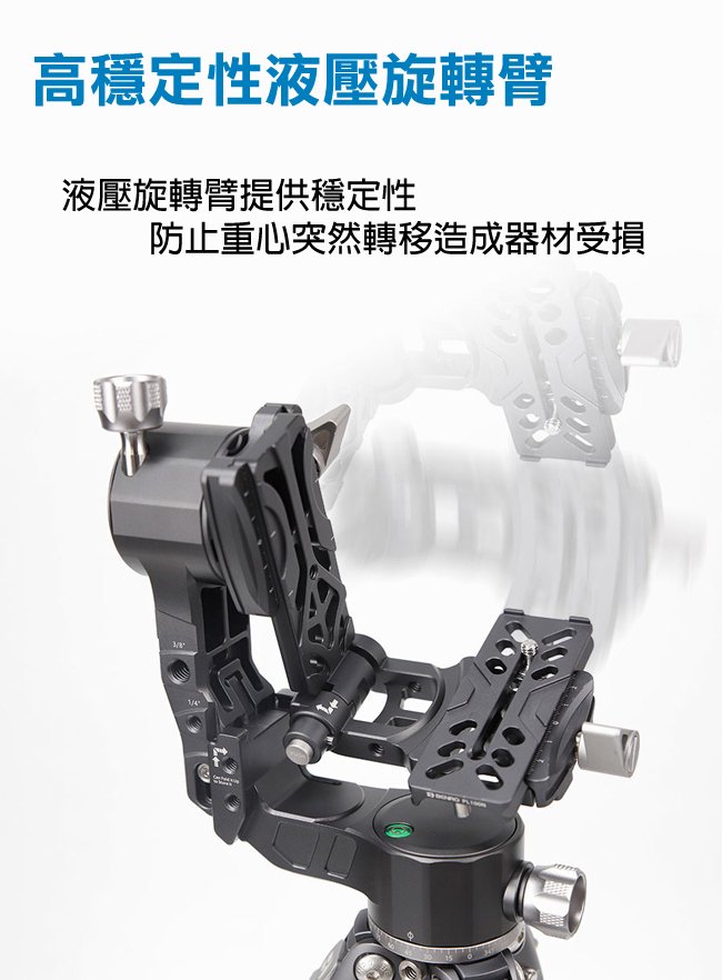 ■ 液壓旋轉臂可自由調節升降、旋轉