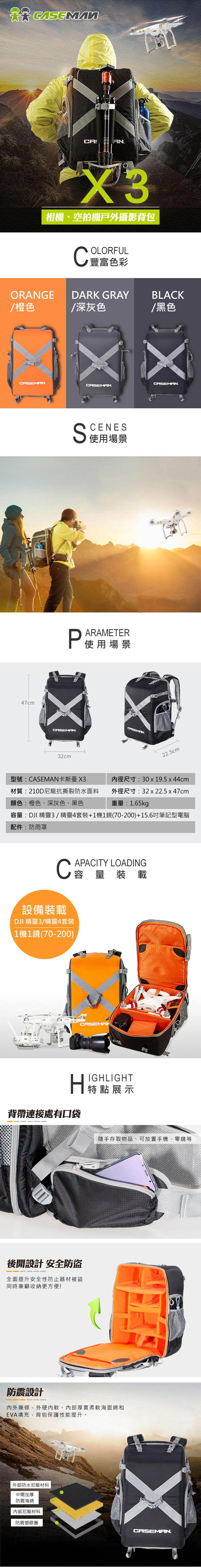 ■ 容量:DJI 精靈3/精靈4套裝+1機1鏡(70-200)+15.6吋筆記型電腦