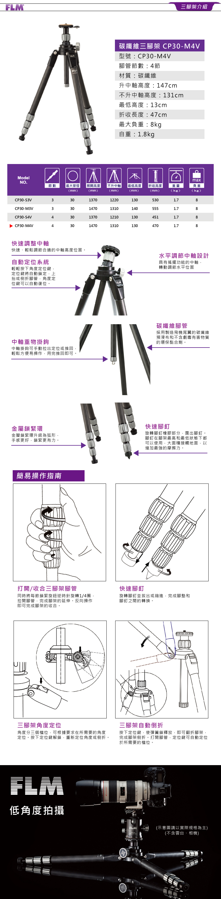【FLM德國孚勒姆】 CP30M4V 碳纖維三腳架
