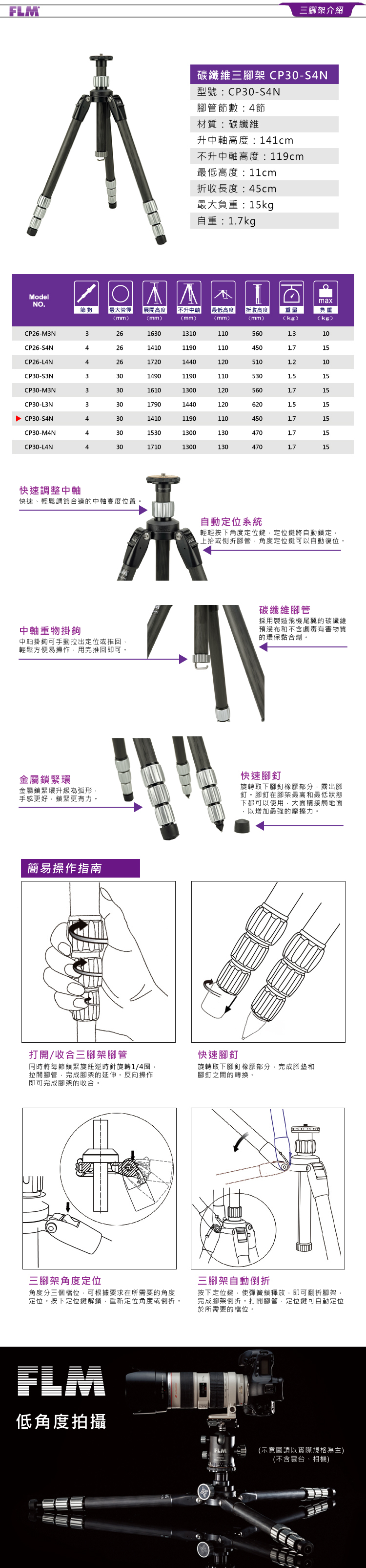 【FLM德國孚勒姆】CP30S4N 碳纖維三腳架