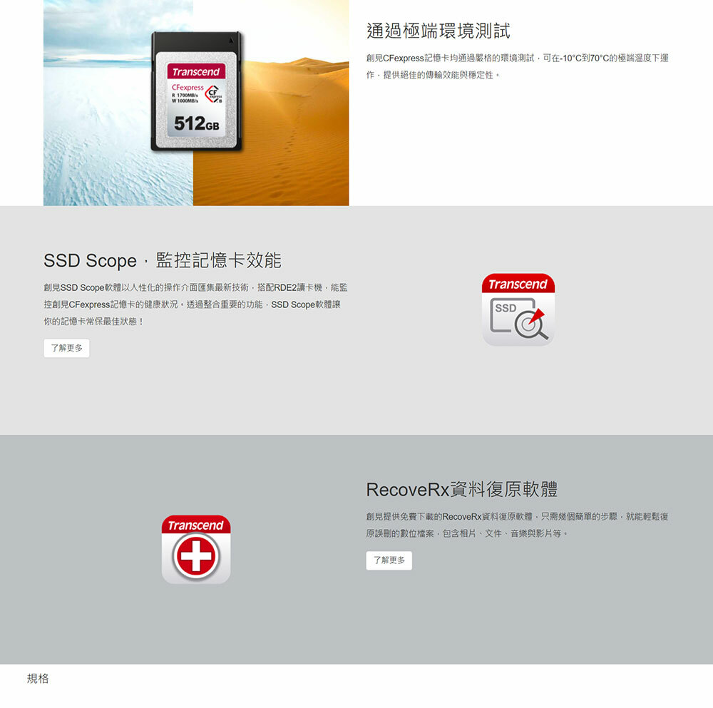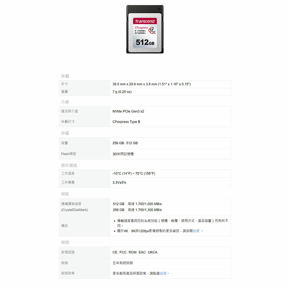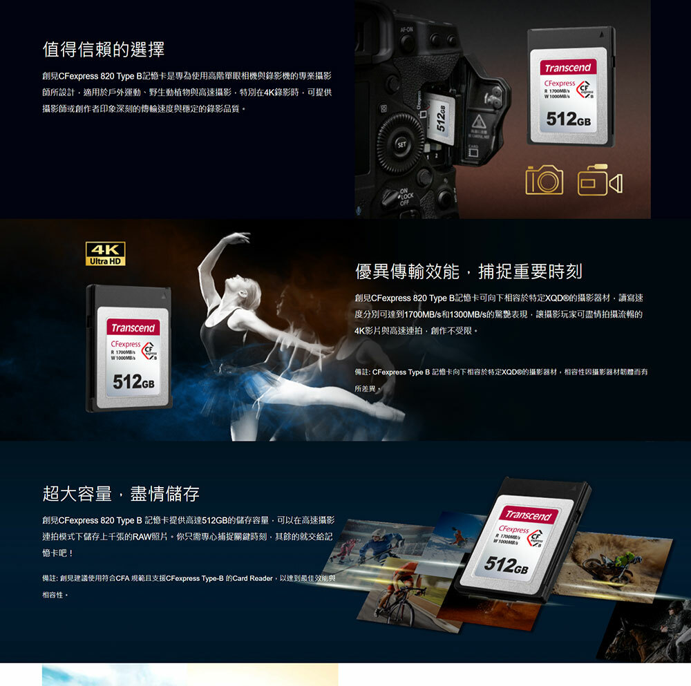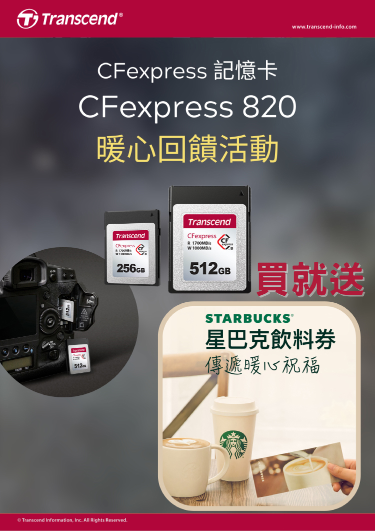 為配合不斷推陳出新的高階數位攝錄設備,創見推出CFexpress 820 Type B記憶卡,提供1700MB/s優異傳輸效能與高達512GB的儲存容量。